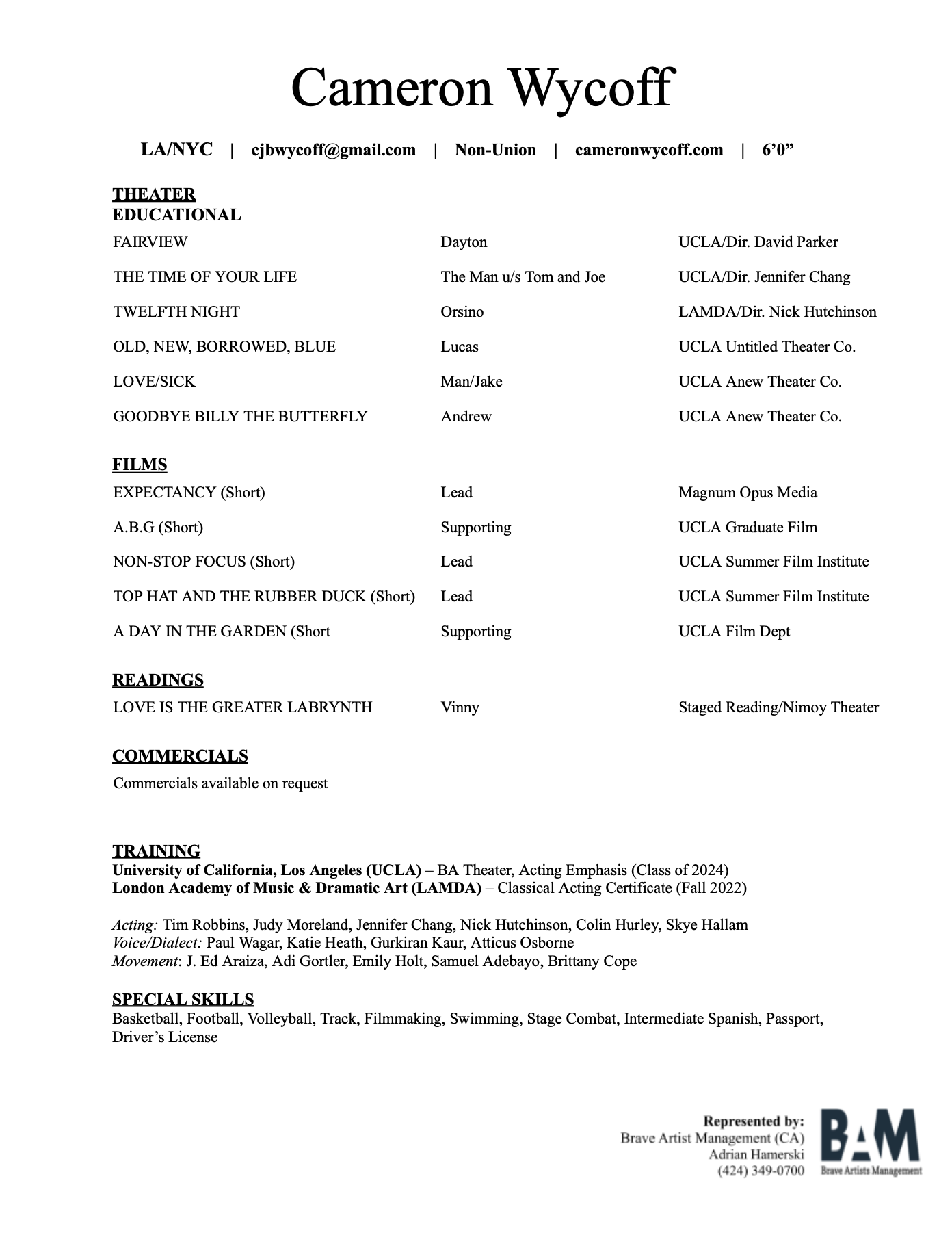 Cameron Wycoff - Actor